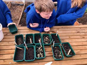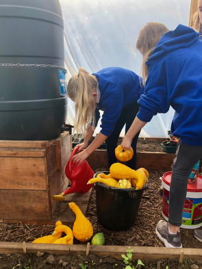 We have established a farm site on the school grounds, including a large polytunnel, lots of growing beds and a shed for storing tools. The four P6 and P7 classes participate in the school farm once a week throughout the school year. The school farm was devised to fulfil multiple goals of the Curriculum for Excellence, and the teachers have confirmed that it is meeting expectations.