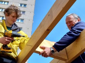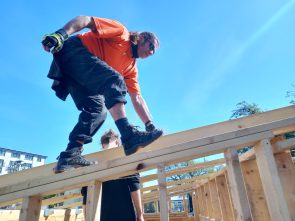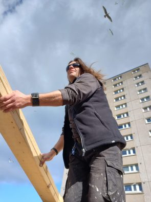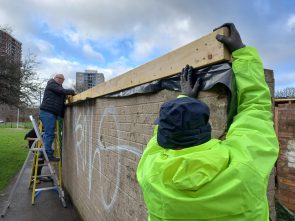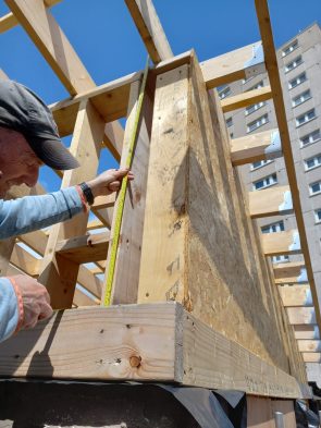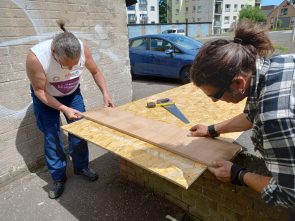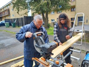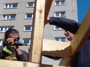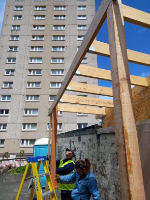 At Muirhouse Neighbourhood Garden, the LAH team have taken on the challenging task of converting four disused garages into a community garden shed and hub. In total, twelve participants have so far contributed to the build, many of whom have brought lots of relevant experience to the project. Construction began in October 2023 with Workshop Leader Seal, and the team have since been busy knocking down the existing garage walls, building new stud walls, and fixing the existing roofs. One of the most challenging parts of the project has been navigating our ever-temperamental Scottish weather; nevertheless, come rain or shine, we’ve been pleased to see many participants lending their skills to build this important community asset.