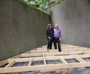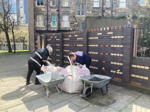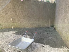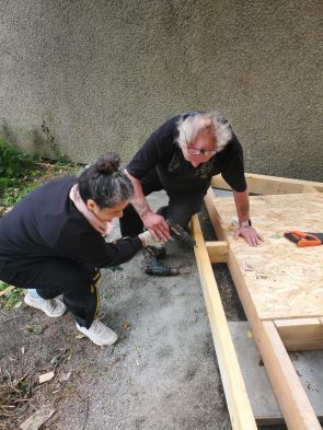 Our third LAH project recently began in Leith’s Citadel Community Garden. At this site, one of our LAH sessions is exclusively a women’s group with the view to provide women who are over 50 and out of work with a space to improve their confidence and skills in joinery. The group has been tasked with building an usual triangular shaped timber shed to slot into an unused space in the garden. Although the project started in late March, we’re pleased to have a team of seven participants ready to go, but foundations must be built before we can get onto the fun bit of building the timber!